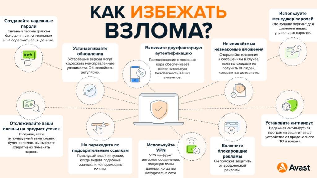 - Не используйте легко угадываемые пароли, такие как даты рождения или имена.